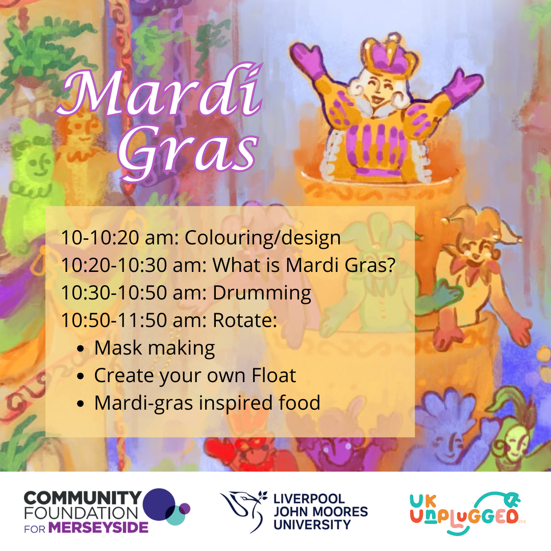 Join us at the Bloom Building, Birkenhead and step into the vibrant world of Mardi Gras!!
